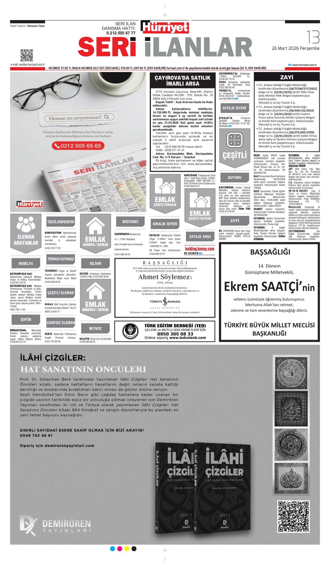 Hürriyet Gazetesi Vefat İlanı Ver | 7/24 HizmetEKREM SAATÇİ, AHMET SÖYLEMEZ,26 Mart 2026-Hürriyet Bugünkü Vefat (Ölüm) – Başsağlığı – …
