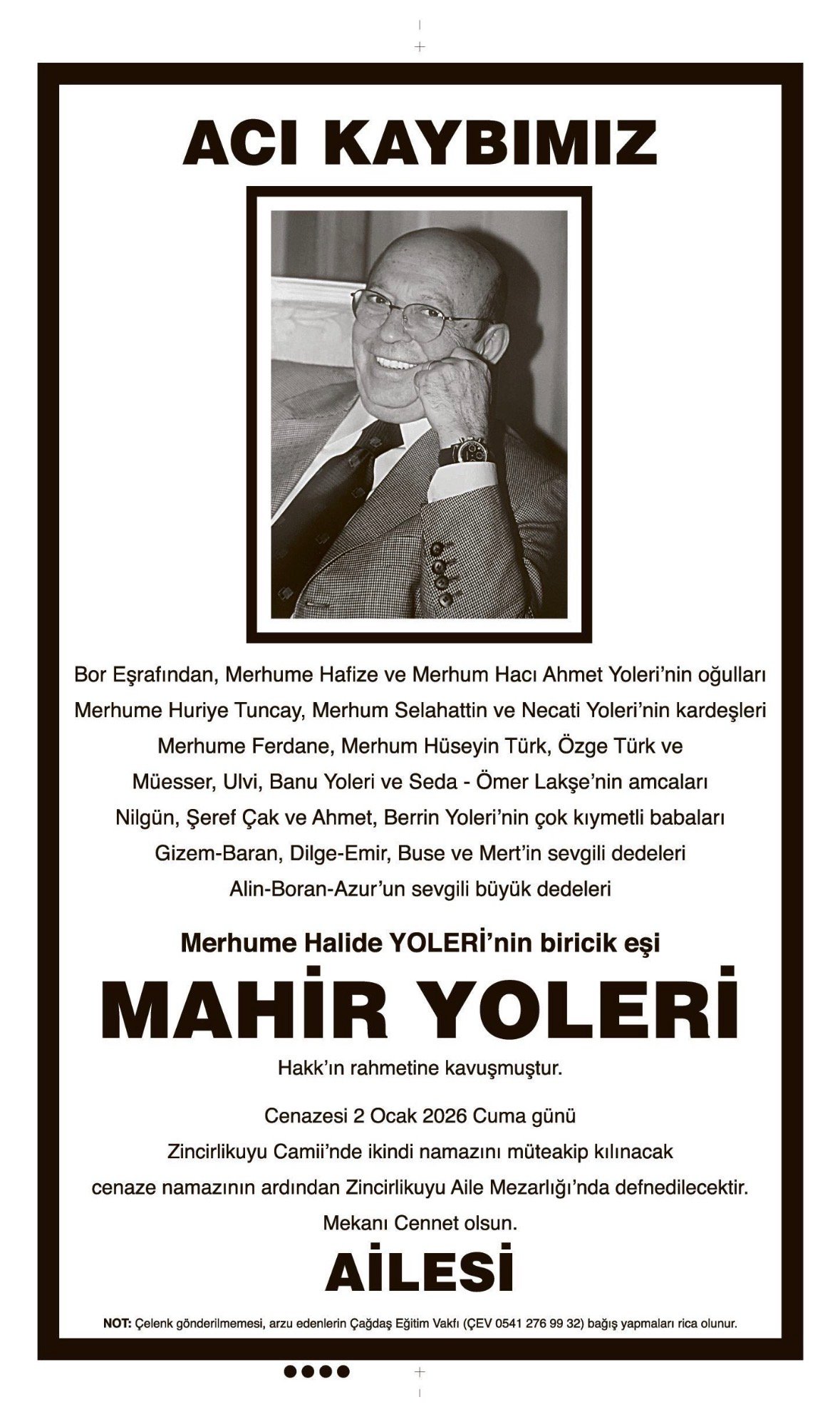 Hürriyet Bugünkü Vefat (Ölüm) – Başsağlığı – Anma – Teşekkür – Mevlit İlanları-1.1.2026