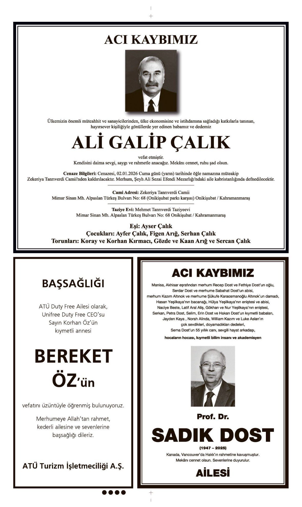 - Prof. Dr. SADIK DOST – VEFAT İLANI,