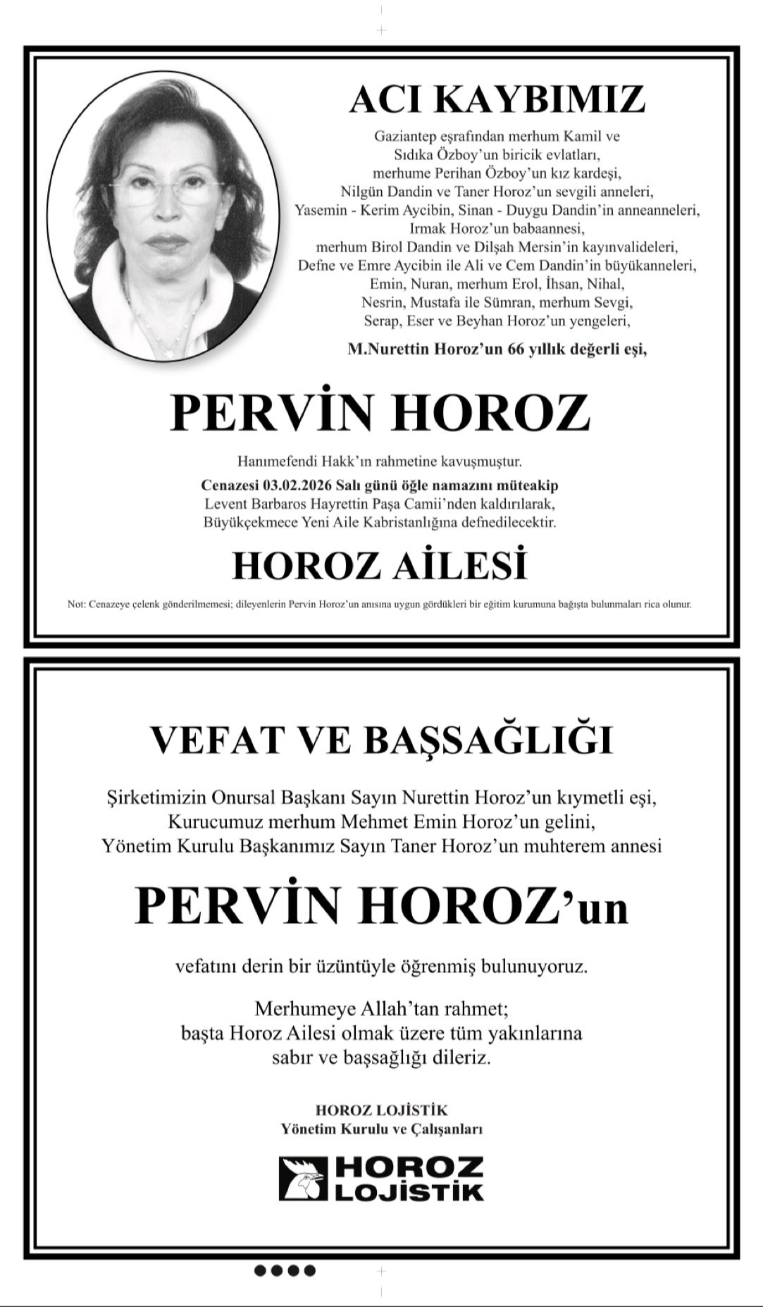 - PERVİN HOROZ – Vefat İlanı,