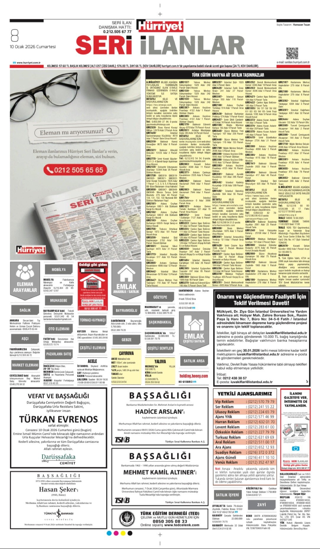 Hürriyet Bugünkü Vefat (Ölüm) – Başsağlığı – Anma – Teşekkür – Mevlit İlanları-10.1.2026