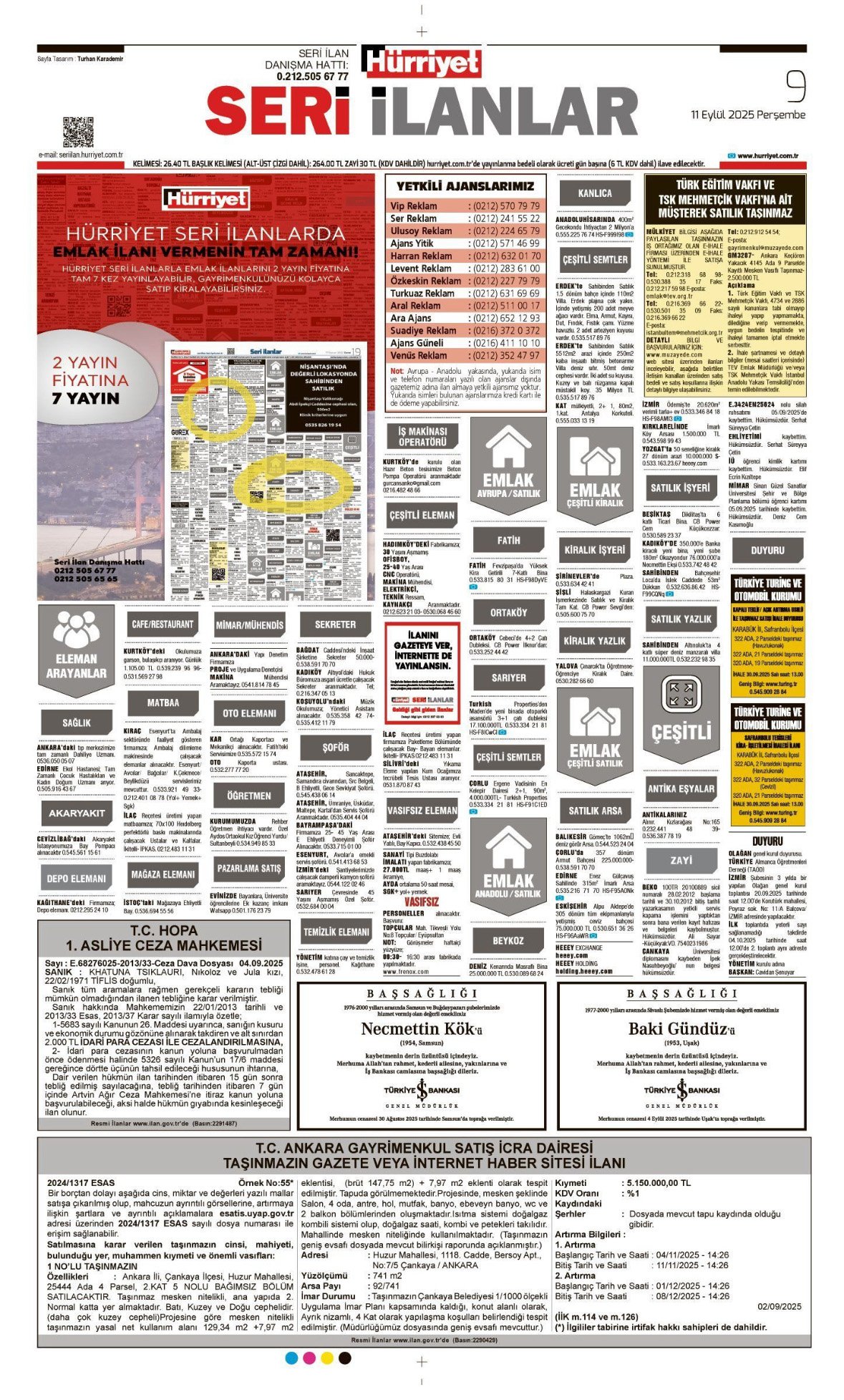 Hürriyet Bugünkü Vefat (Ölüm) – Başsağlığı – Anma – Teşekkür – Mevlit İlanları-11.9.2025