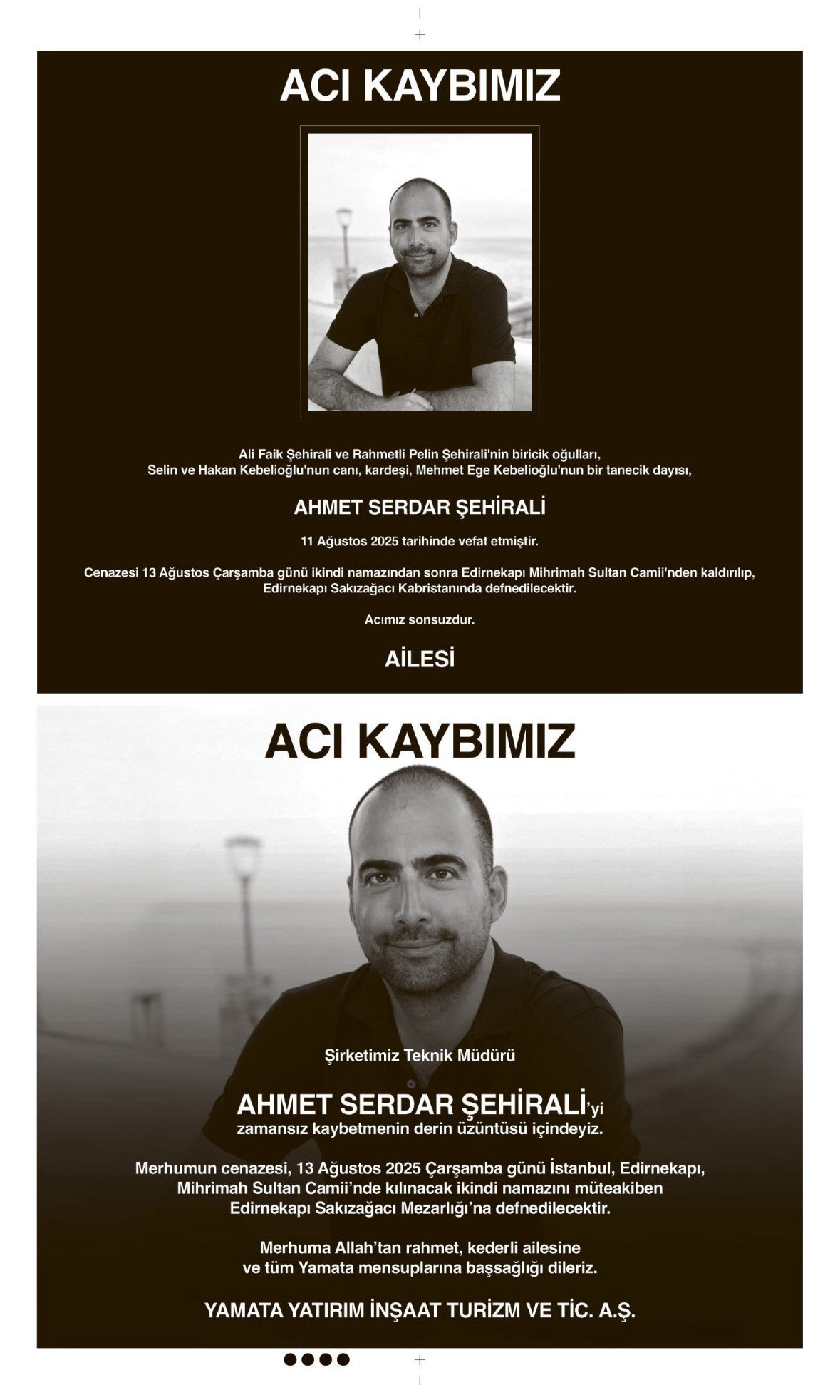 - AHMET SERDAR ŞEHİRALİ – VEFAT ve BAŞSAĞLIĞI İLANI,