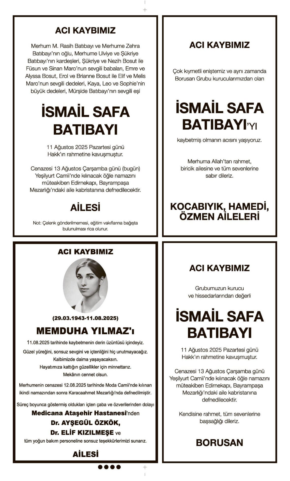 - İSMAİL SAFA BATIBAYI – VEFAT İLANI,