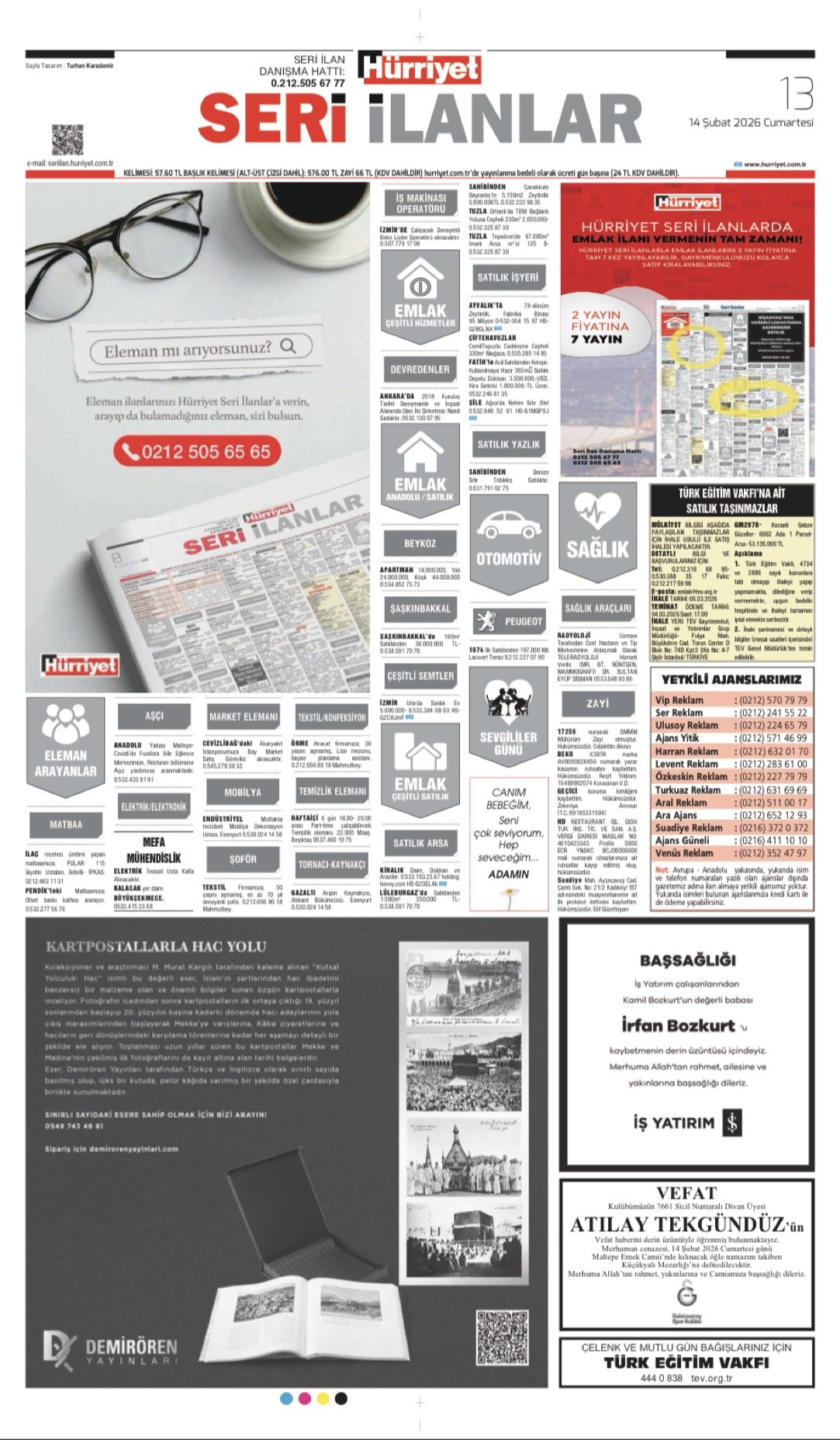 Hürriyet Bugünkü Vefat (Ölüm) – Başsağlığı – Anma – Teşekkür – Mevlit İlanları-14.2.2026