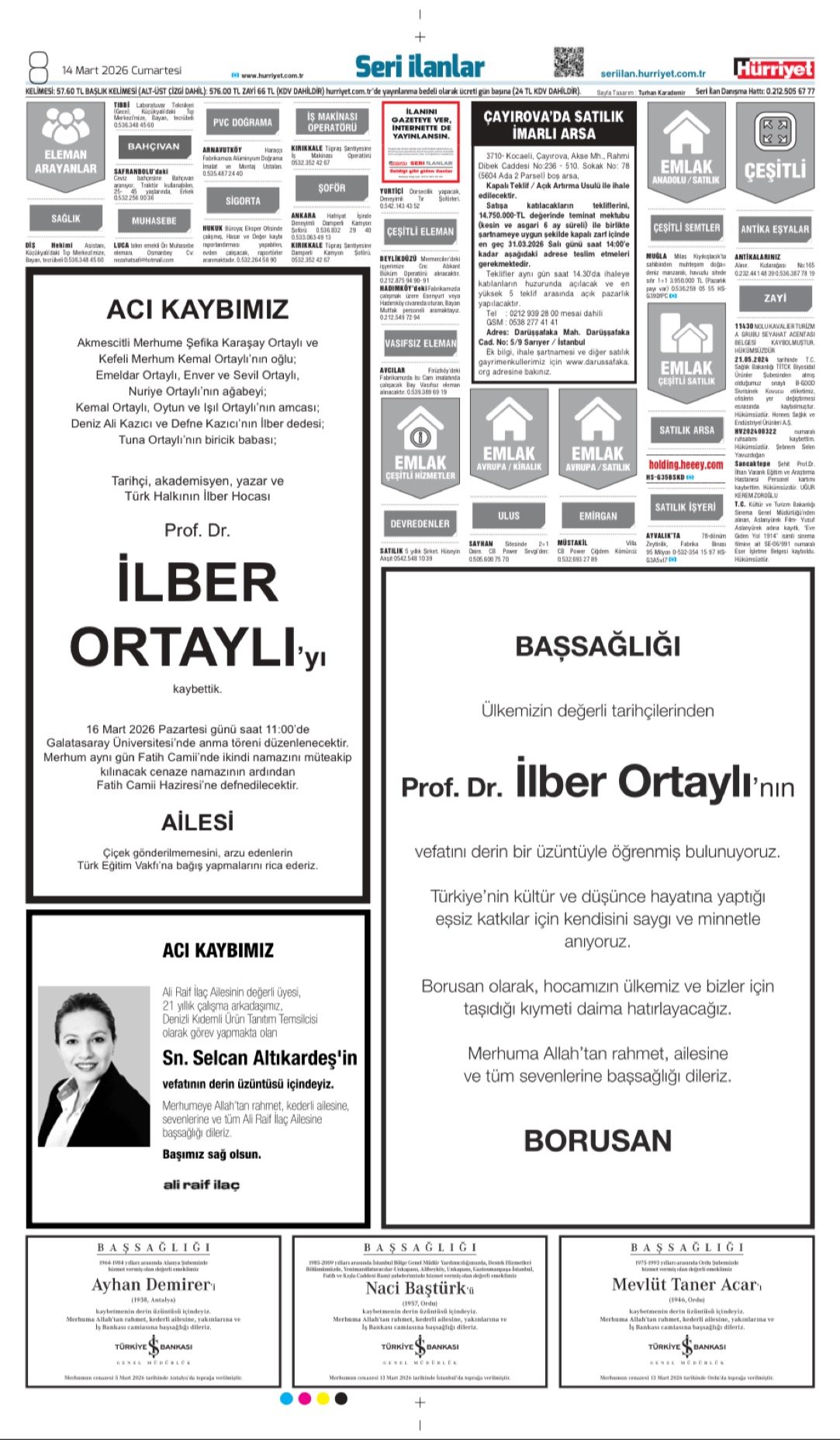 - Prof. Dr. İLBER ORTAYLI – Vefat İlanı,