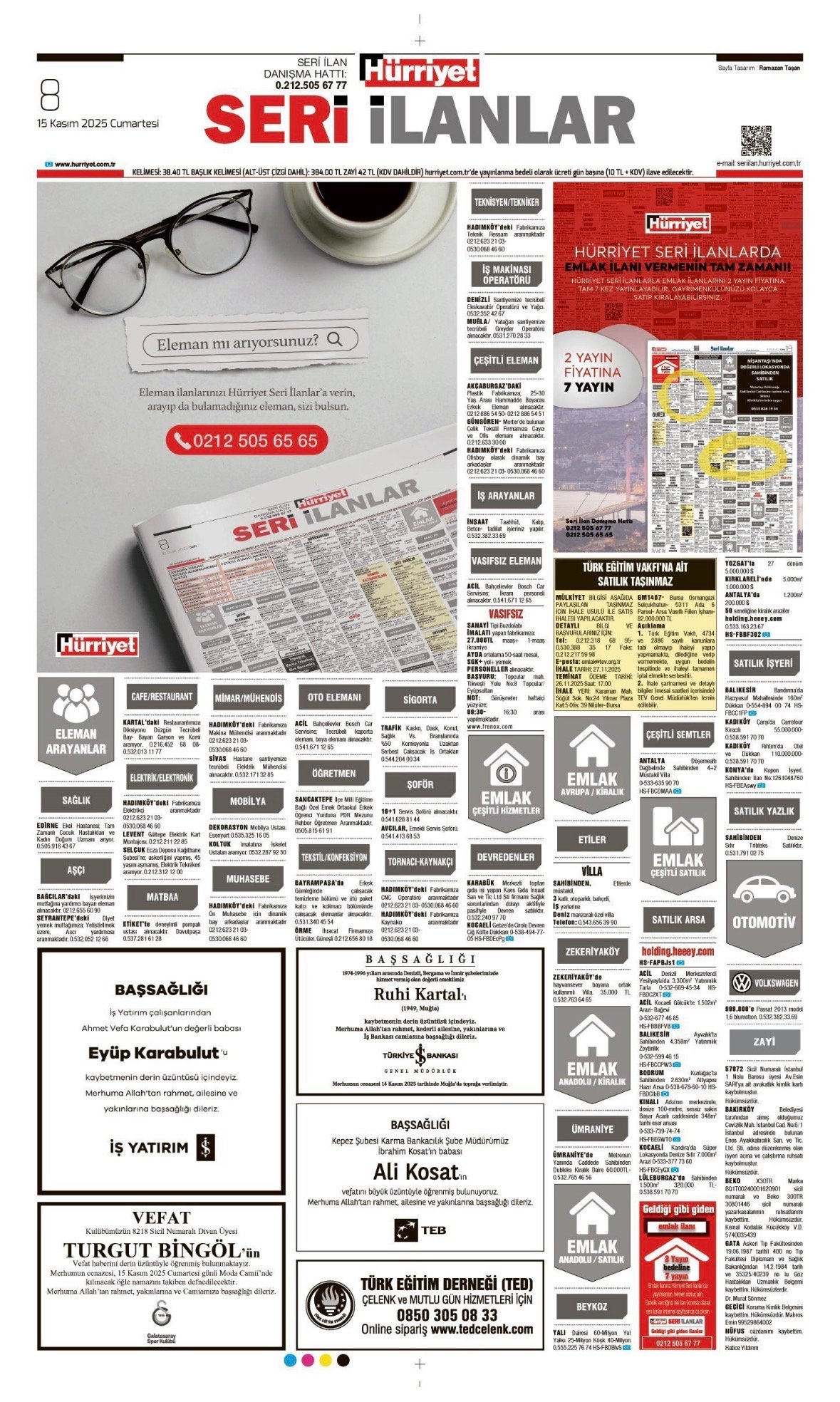 Hürriyet Bugünkü Vefat (Ölüm) – Başsağlığı – Anma – Teşekkür – Mevlit İlanları-15.11.2025