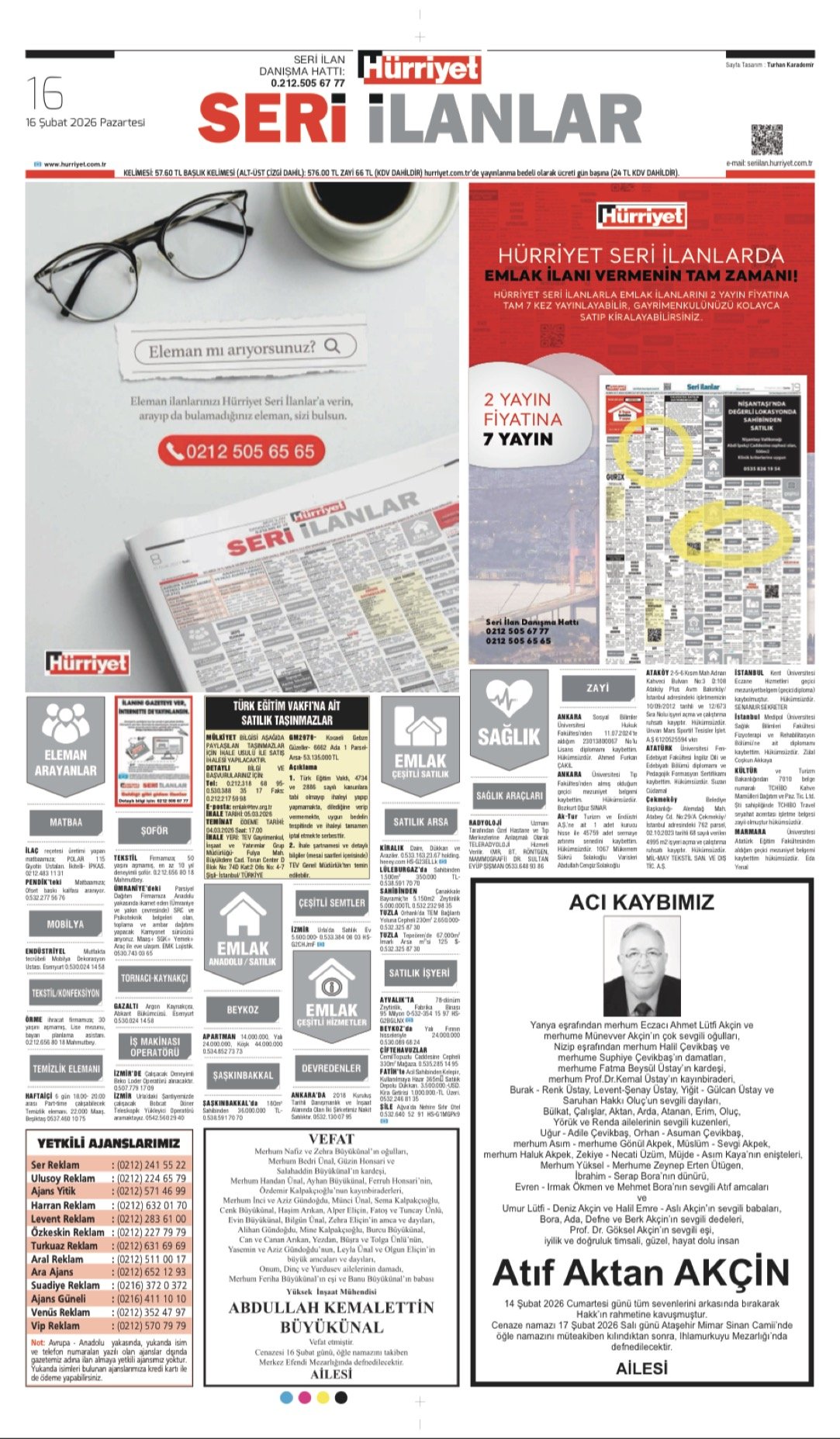 Hürriyet Bugünkü Vefat (Ölüm) – Başsağlığı – Anma – Teşekkür – Mevlit İlanları-16.2.2026