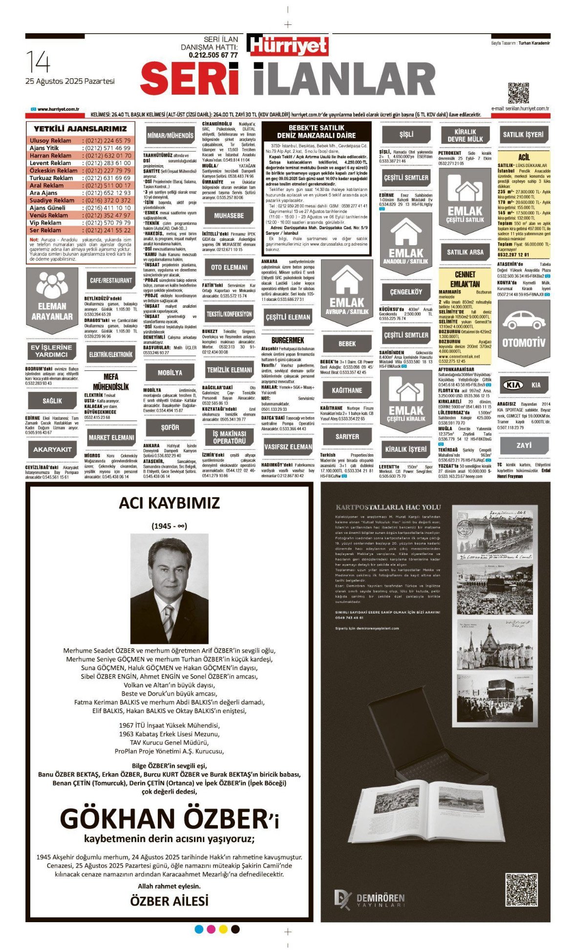 - GÖKHAN ÖZBER – VEFAT İLANI,