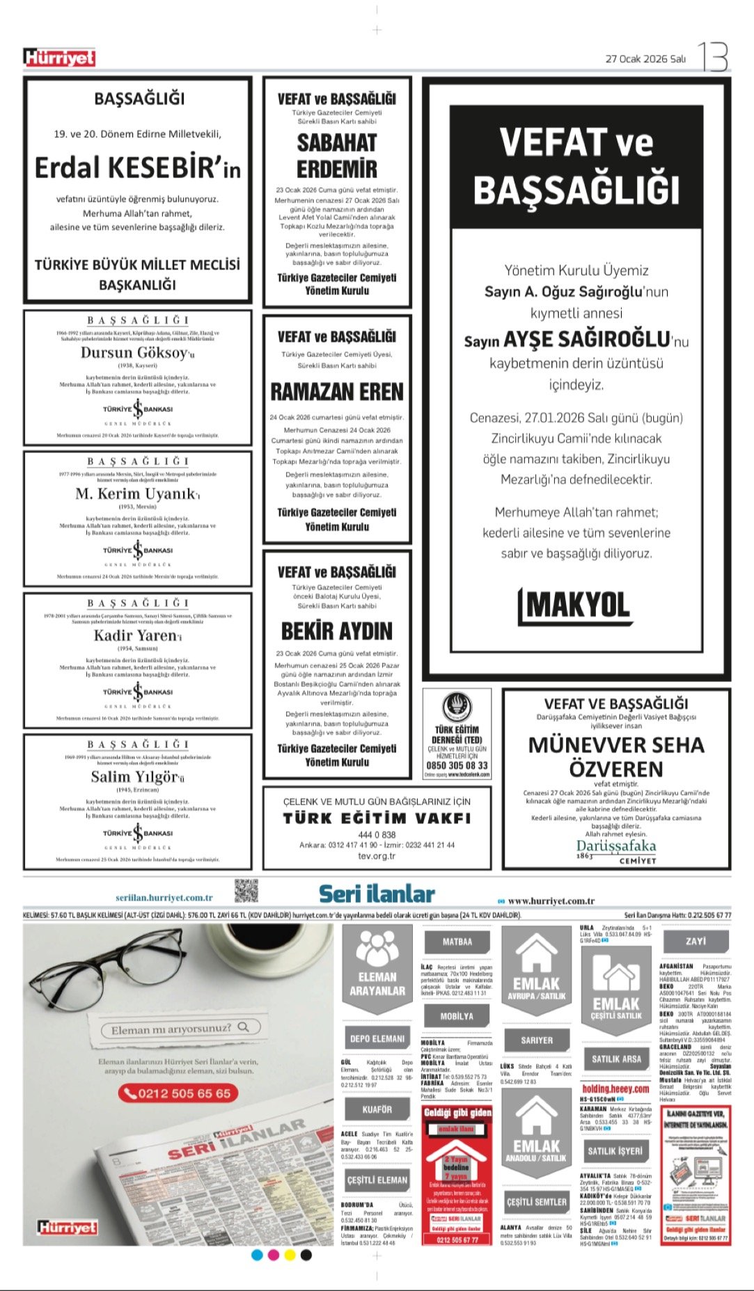 - ERDAL KESEBİR – BAŞSAĞLIĞI İLANI,