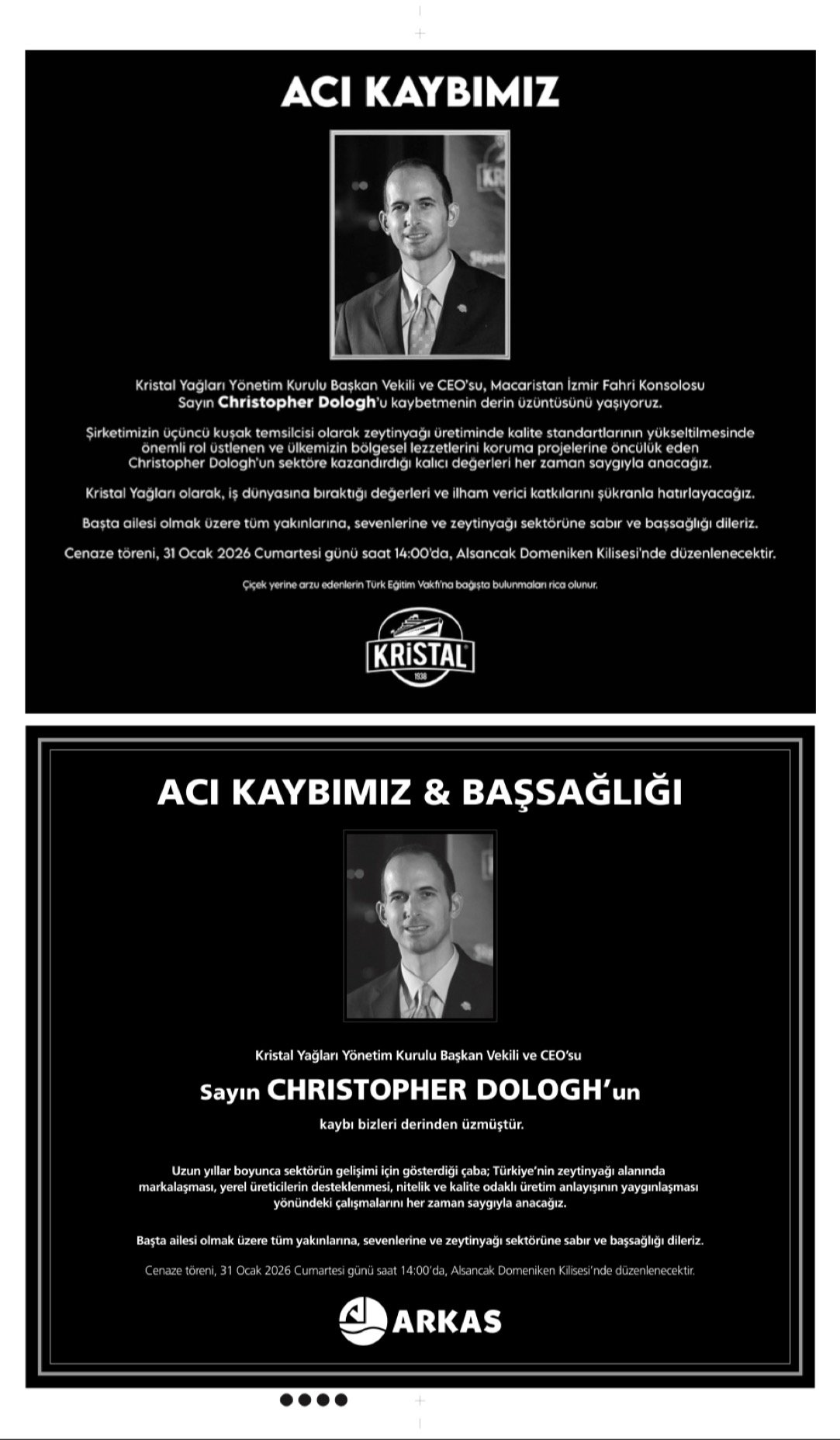 - CHRISTOPHER DOLOGH – Vefat- Başsağlığı İlanı,