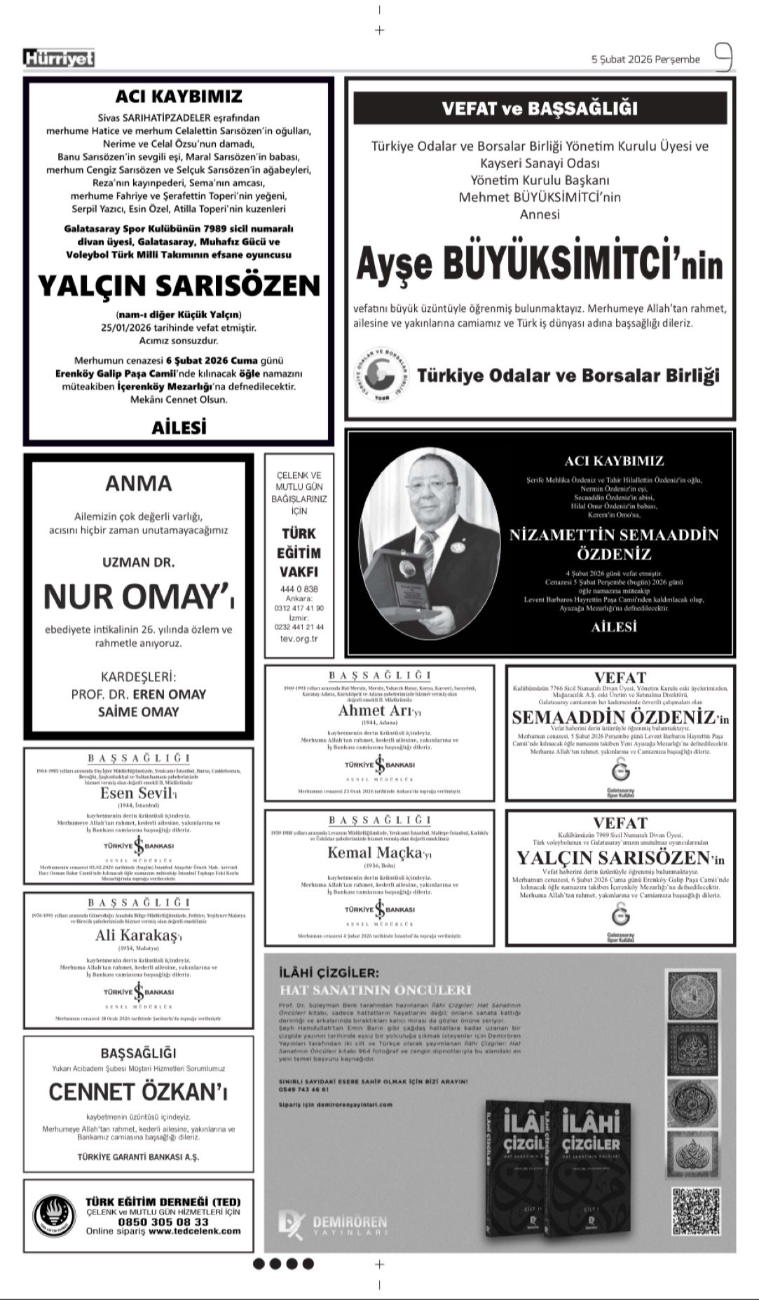 Hürriyet Bugünkü Vefat (Ölüm) – Başsağlığı – Anma – Teşekkür – Mevlit İlanları-5.2.2026