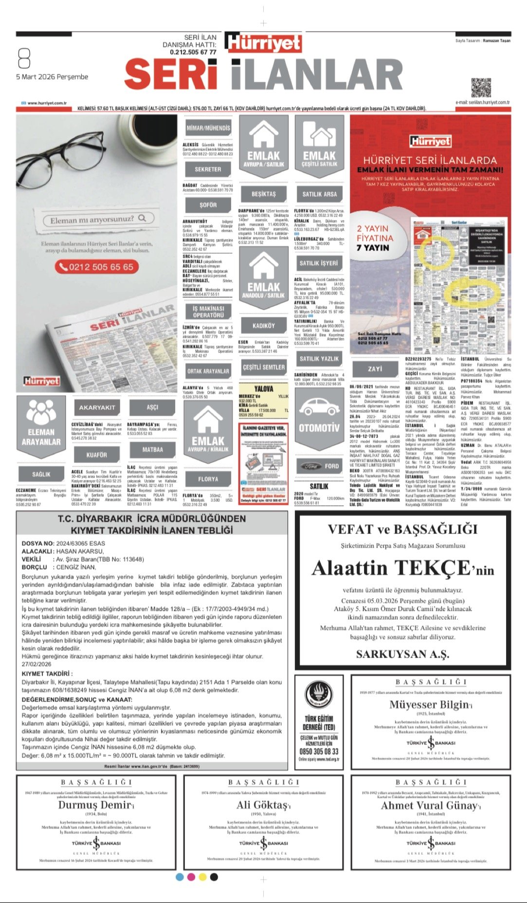 Hürriyet Bugünkü Vefat (Ölüm) – Başsağlığı – Anma – Teşekkür – Mevlit İlanları-5.3.2026