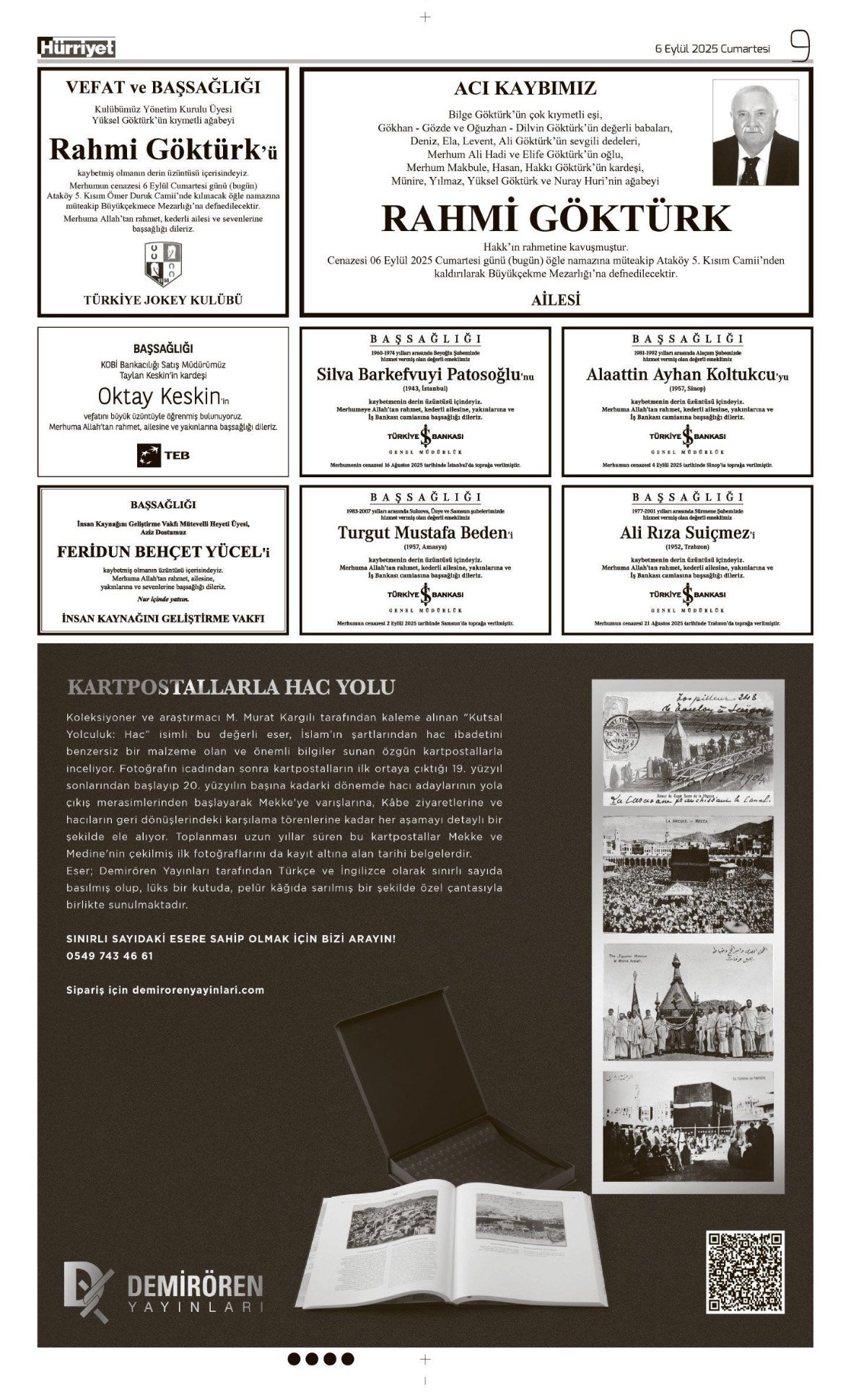 Hürriyet Bugünkü Vefat (Ölüm) – Başsağlığı – Anma – Teşekkür – Mevlit İlanları-6.9.2025