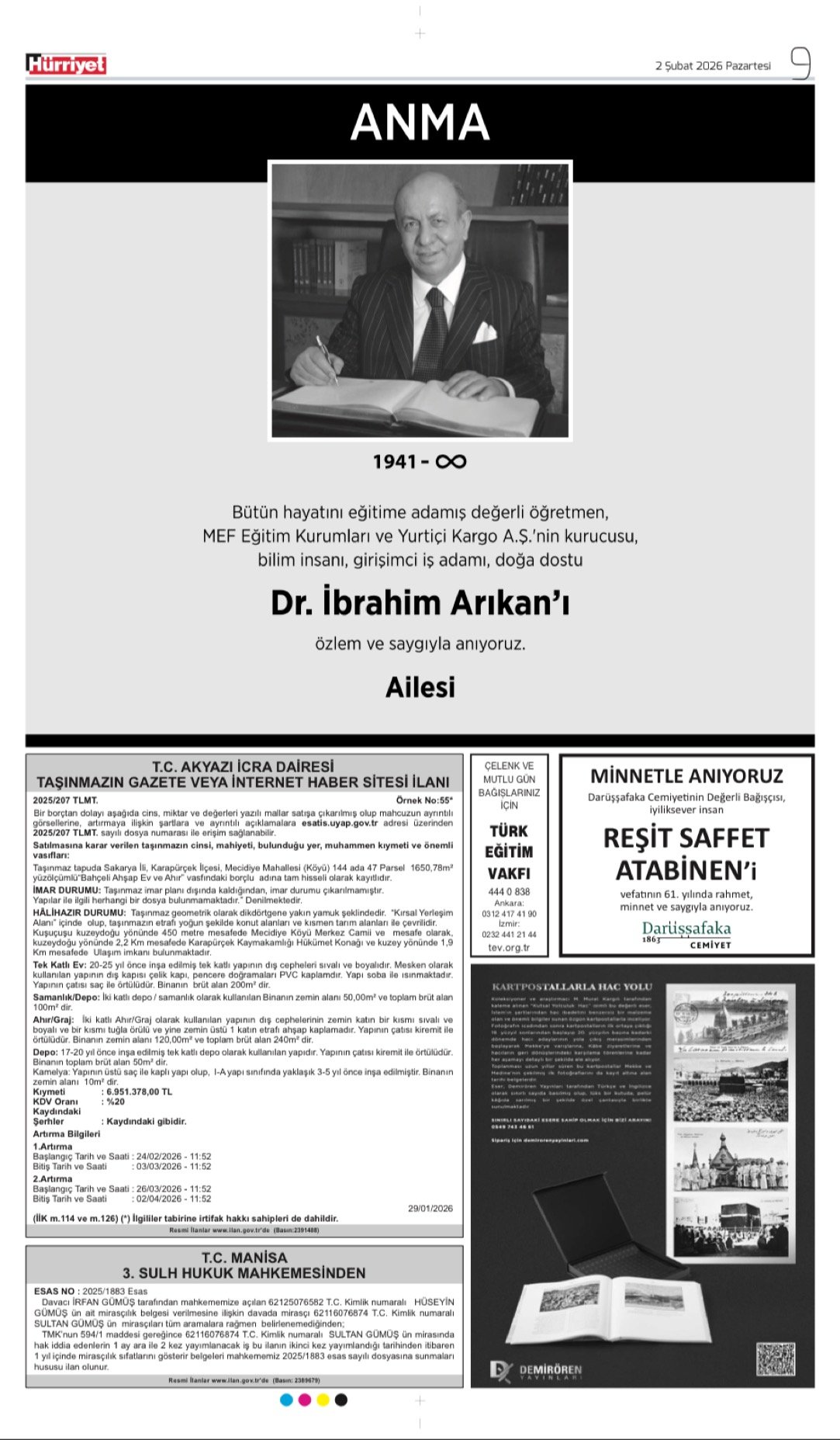 - Dr. İBRAHİM ARIKAN – Vefat Anma İlanı,